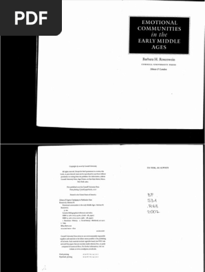 Barbara H Rosenwein Emotional Communities In The Early Middle Ages Cornell University Press 2006 Pdf Pdf Emotions Anger